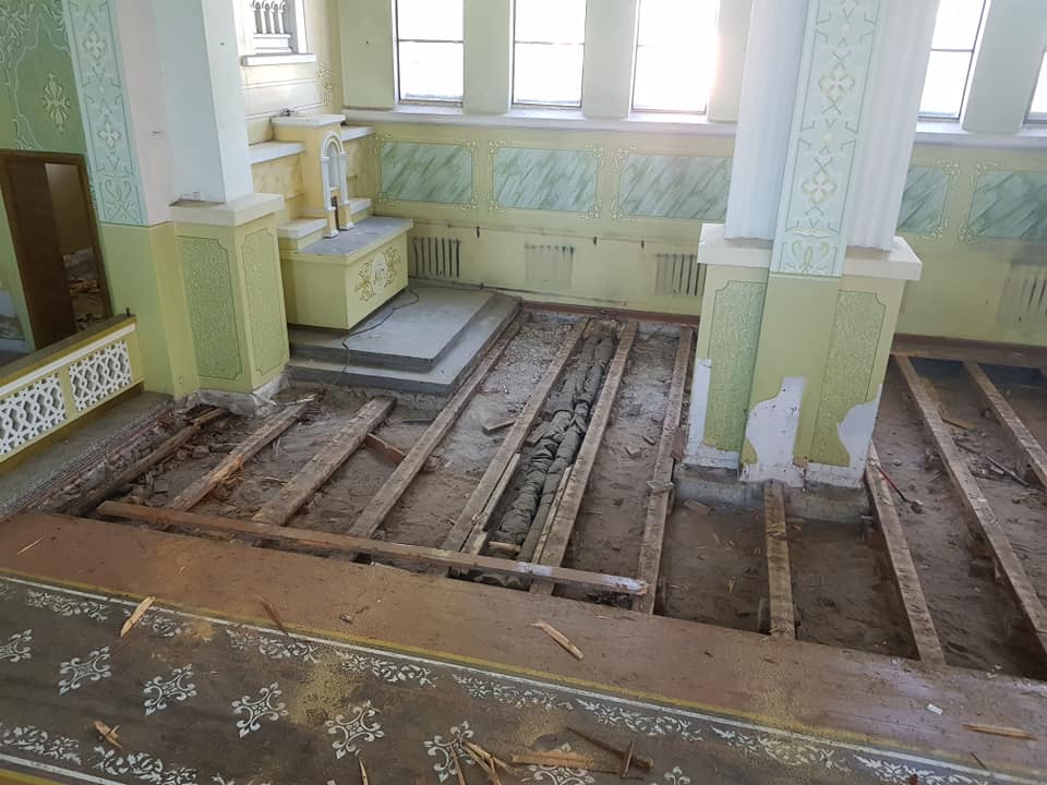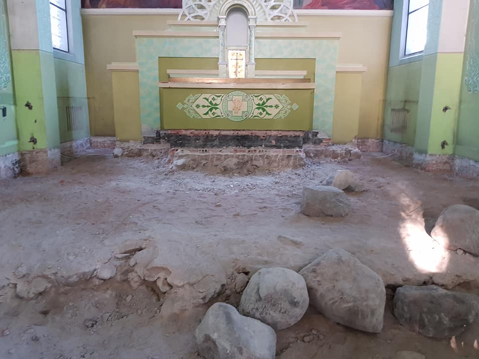 Jau įsibegėjo Tirkšlių Kristaus Karalio bažnyčioje grindinio darbai, reikalingi įvesti naują šildymo sistemą. Įmonės Vaidva kolektyvas jau paruošė gruntą požeminių kabelių tiesimui bei tankinimui.